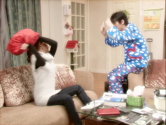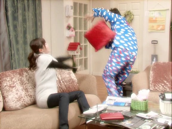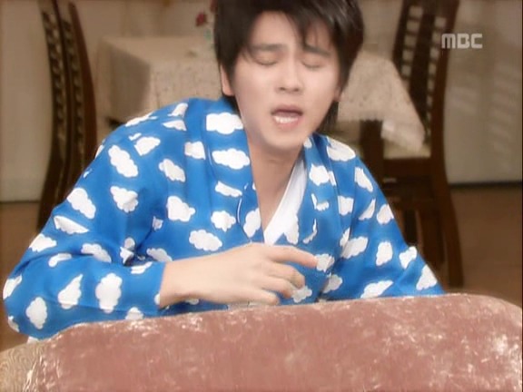 민용 : 어 어디 간다더니 안나갔어? 에이 잘됐다 나 배고파 빨리 밥줘 여보 마누라 배고파 빨리 밥주세요 밥~