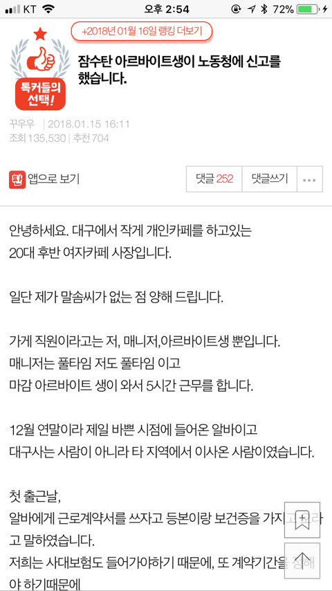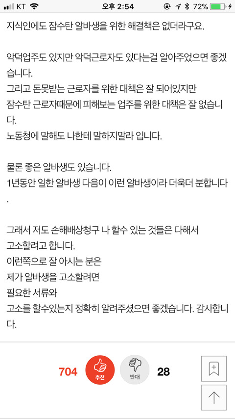 작성자느갭ㅎ 작성시간 18.01.17 진짜 나두 사업하는 사람이지만 저런 양아치 직원들만 너무 보호해줘 진짜 나는 몇일전까지 일 잘하고 잇던 직원이랑 서로 합의하에 일을 그만두게됫는데 전에 자기가 하던일 다 일부로 이상하게 정리해놓고가고 만약 A로 발주를 해야되는게 잇는데 딱봐도 일부로 B라고 써놓고 가고 ; 다음사람이 와서 일다 잘못하고... 그래도 업주는 진짜 그냥 당해야해..