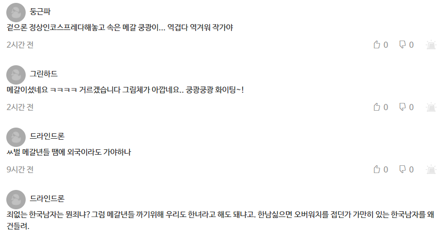 이 글이 올라왔는데 이제뭐 주주룩 달리지;; 메갈이냐 뭐냐이런식으로