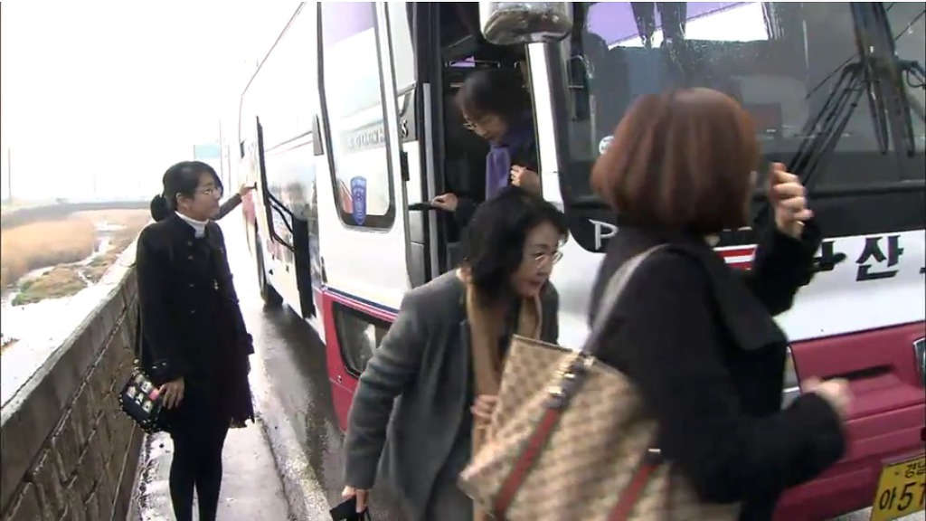 여기에 니혼진 십여 명을 태운 버스가 도착함.