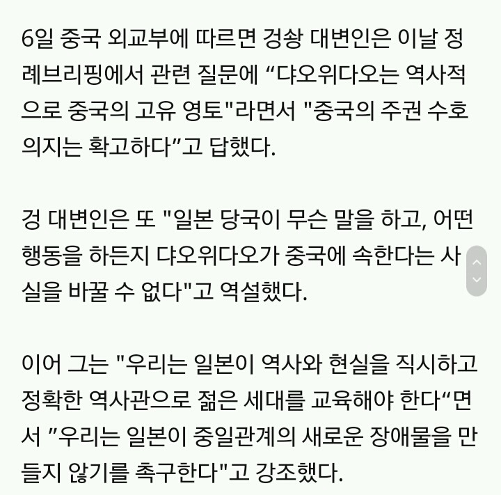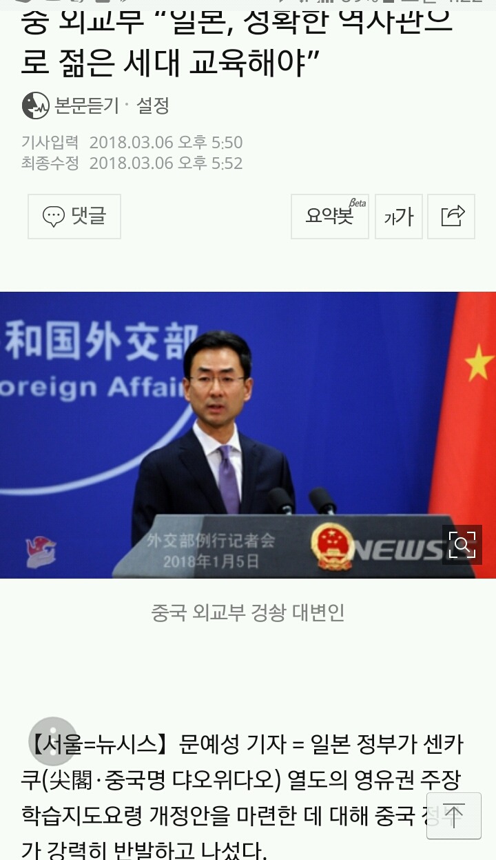 [여시뉴스데스크]중 외교부 “일본, 정확한 역사관으로 젊은 세대 교육해야" 작성자심수미 기자|작성시간18.03.07|조회수1,077 목록 댓글 16 글자크기 작게가 글자크기 크게가 출처 :http://m.news.naver.com/read.nhn?mode=LSD&mid=sec&sid1=104&oid=003&aid=0008472276 다음검색 현재 게시글 추가 기능 열기 북마크 공유하기 신고 센터로 신고 댓글 댓글 16 댓글쓰기 답글쓰기 댓글 리스트 작성자말랭이호구마 | 작성시간 18.03.07 서로 때려 빨리 작성자와플마딛어 | 작성시간 18.03.07 느그부터 잘해 작성자목두뤼 | 작성시간 18.03.07 너네부터 삭제된 댓글입니다. 답댓글 작성자하칰 | 작성시간 18.03.07 22 ㅋㅋㅋㅋㅋ 댓글 전체보기