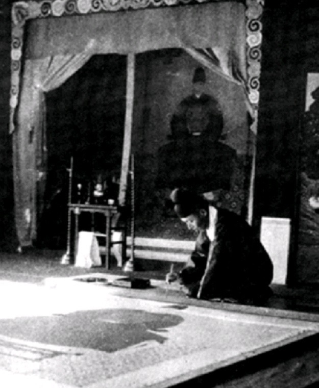 1930년대에 김은호라는 인물이 세조의 어진을 복사하여 본 떠 그리는 장면입니다.