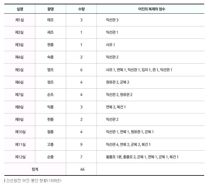 시간은 흘러 조선이 망한 후인 20세기에 들어서까지도 보존된 어진은 추존왕 2명을 포함하여 위 도표대로 총 12명의 어진이 존재했었습니다.
