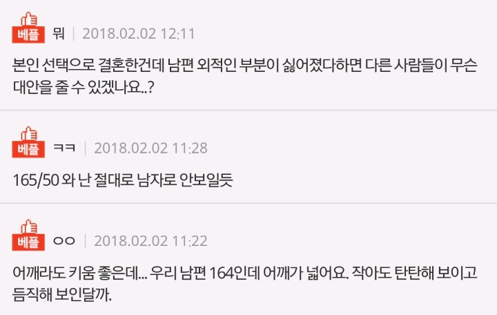 작성자쥬리봉 작성시간 18.03.26 내상사가 결혼하면 남편품에 안길일없다고 키하나도 안중요하다고했는데....
