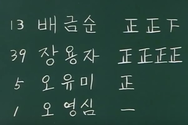 월숙이(영심이 친구) 가 영심이 꼬드겨서 반장선거 나가게 함