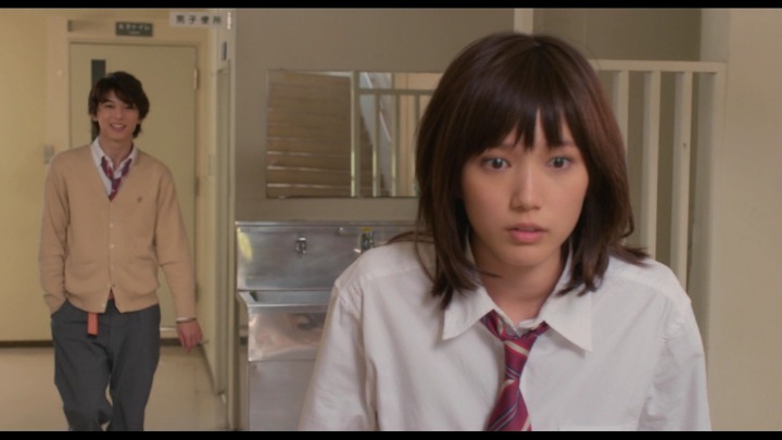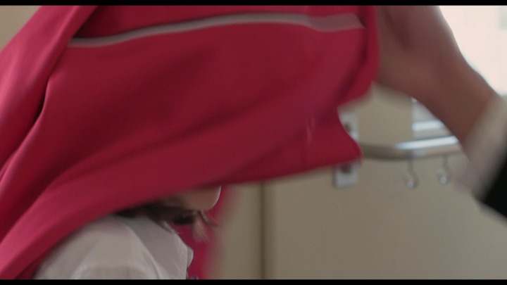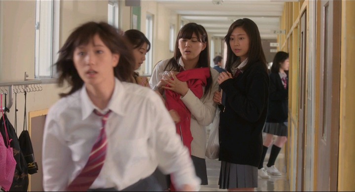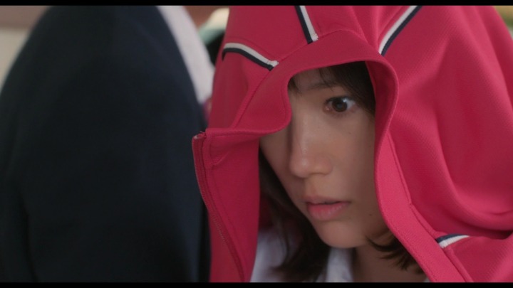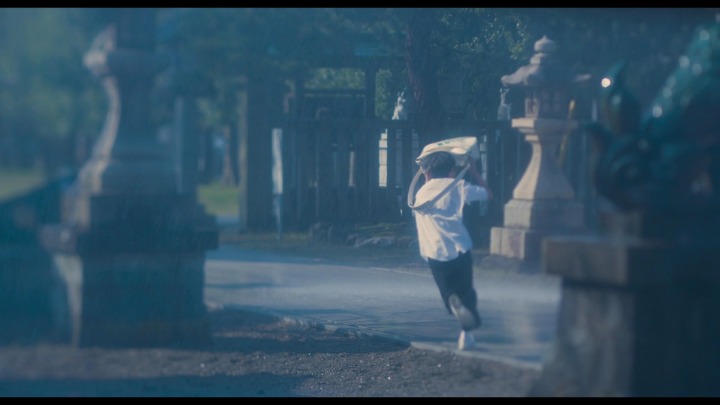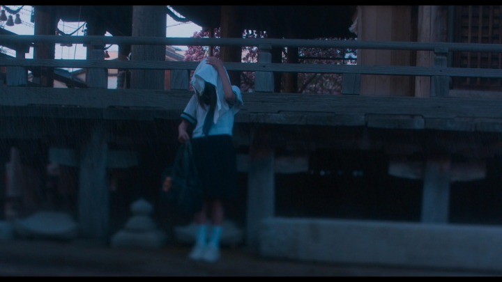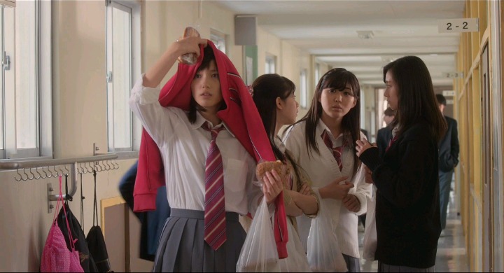 후타바에게 옷을 주고 자기는 가방으로 비 막으면서