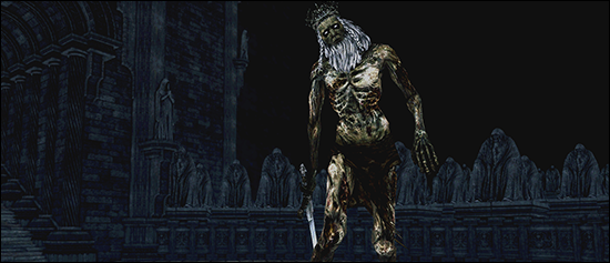 많은 난관을 거친 저주자는 철성의 깊은 곳에서 마침내 철의 옛 왕과 조우했다. 놈은 두 번째 위대한 소울을 머금고 있었다.