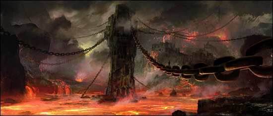 올라피스의 비극은 그것이 끝이 아니었다. 죽었던 철의 왕은 용암 속의 데몬과 융합해 악마와 같은 형상으로 다시 꿈틀거렸다. 철로 만들어졌던 성은 혼돈의 불꽃에서 발생한 용암에 의해 서서히 녹아내려 이른바 <녹아내린 철성>이 되었다. 올라피스는 그렇게 멸망했다.