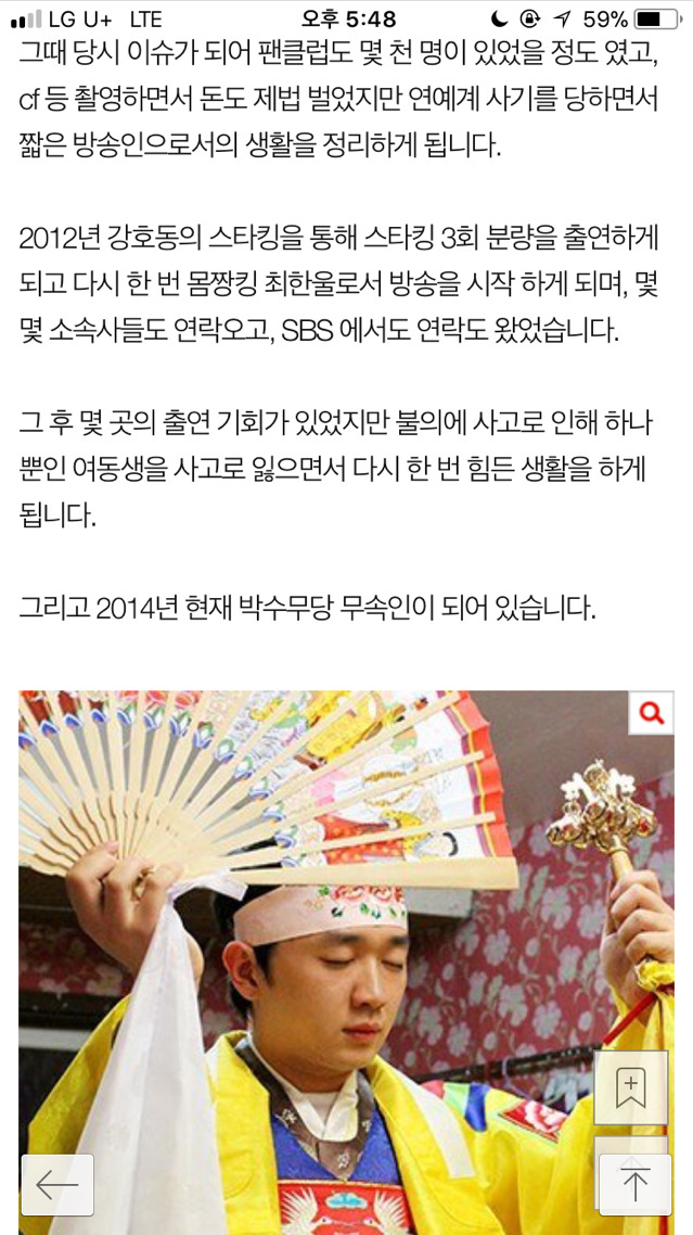 [스크랩] [흥미돋]남자무속인 박수무당입니다. (SM, sbs진실게임 남자얼짱 최한울 기억나는 여시들...?)