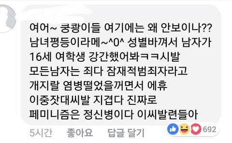 (남자 욕하면 메갈이라 몰아감)