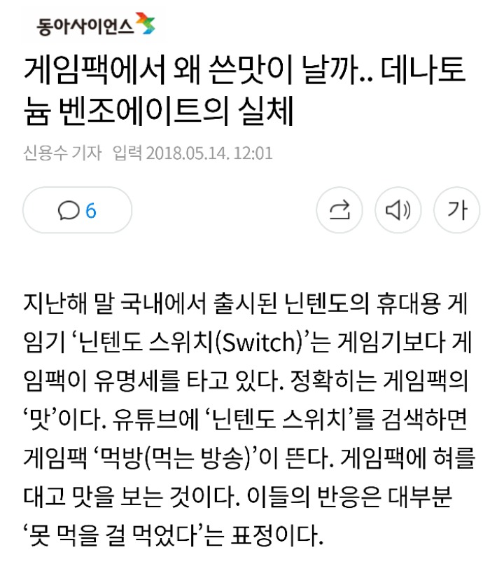 [여시뉴스데스크]게임팩에서 왜 쓴맛이 날까.. 데나토늄 벤조에이트의 실체 작성자돌아온썬칩|작성시간18.05.14|조회수1,571 목록 댓글 11 글자크기 작게가 글자크기 크게가 출처 :http://v.media.daum.net/v/20180514120108590(전문 출처로)먹어요? 왜요?????? 그걸 먹어야 알아....?????? 다음검색 현재 게시글 추가 기능 열기 북마크 공유하기 신고 센터로 신고 댓글 댓글 11 댓글쓰기 답글쓰기 댓글 리스트 작성자호롤롤롤를로 | 작성시간 18.05.14 먹지말라고 발라놓은걸 먹냐 작성자햄복한행스터 | 작성시간 18.05.14 왜먹었어.. 작성자생갈치 1호의 행방불명 | 작성시간 18.05.14 그걸 왜 먹어... 작성자메리메리딸기 | 작성시간 18.05.14 븅신같다 진짜 작성자슈뢰딩거의 카멜레온 | 작성시간 18.05.14 아 뭐야 집에 있는데 궁금하잖아 왜 먹어보고 영상을 올리냐 나 궁금하게;; 댓글 전체보기