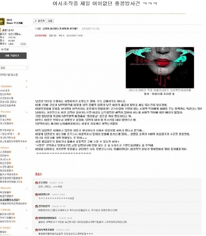 물론 남초의 주작이고 댓글만 봐도 주작임을 단박에 알 수 있는데