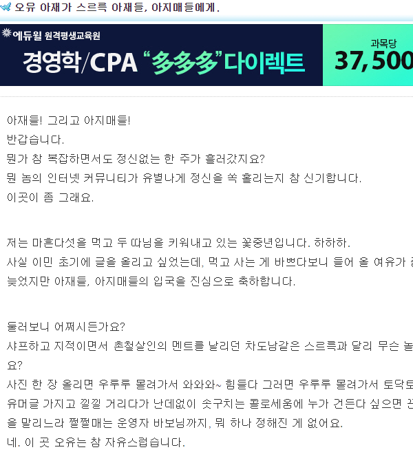 오유공의 2차글은 한마디로 '알싸' 게시글의 캽쳐였어