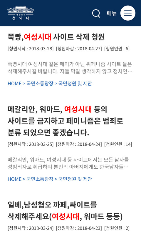작성자I LOVE U MORE THAN FREE WIFI 작성시간 18.05.24 청원인원봐ㅋㅋㅋㅋㅋㅋㅋㅋㅋㅋㅋㅋㅋㅋㅋㅋㅋㅋㅋㅋㅋ냄져새끼들 도태해!