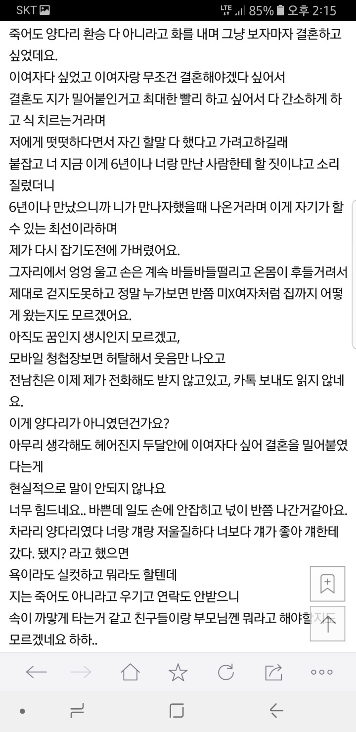 글쓴분도 지난 인연에 마음 넘 쓰지말고 잘 추스려서 진짜 짝 만나 행복하길 -
