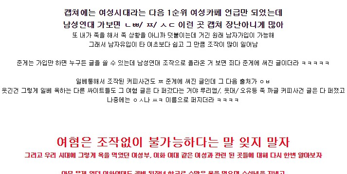 저 커피 사건 때처럼 한남이 여자이고 회원인척 글올린다음에