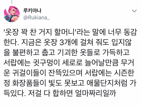 작성자ロキ 작성시간 18.06.07 맞아 나는 예전부터 꾸미는건 관심 없었는데 여행&술을 좋아해서 돈이 안모임ㅋㅋㅋㅋㅋㅋ얼마나 옷을 안샀냐면 애들이 사주던가 지네 안입는 기본티 같은거 다 나 주고 그랬음ㅋㅋㅋㅋ