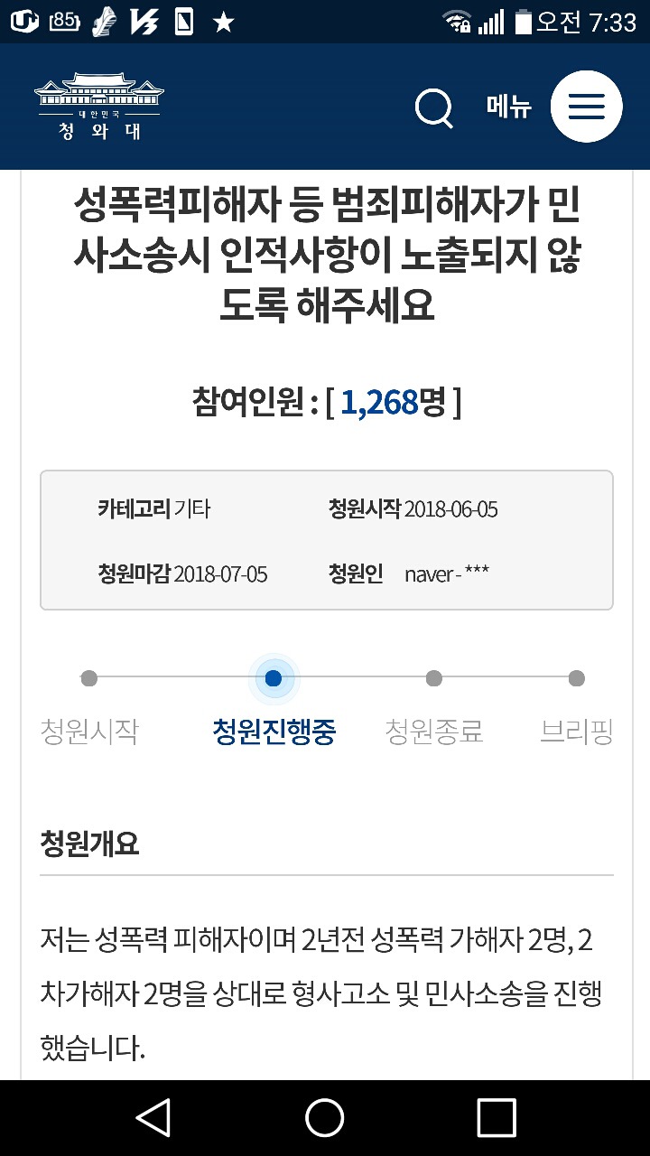 6월 5일날 시작된 청원이라서 아직까진 참여인원이 적지만 피해자들에게 정말 중요한 문제고