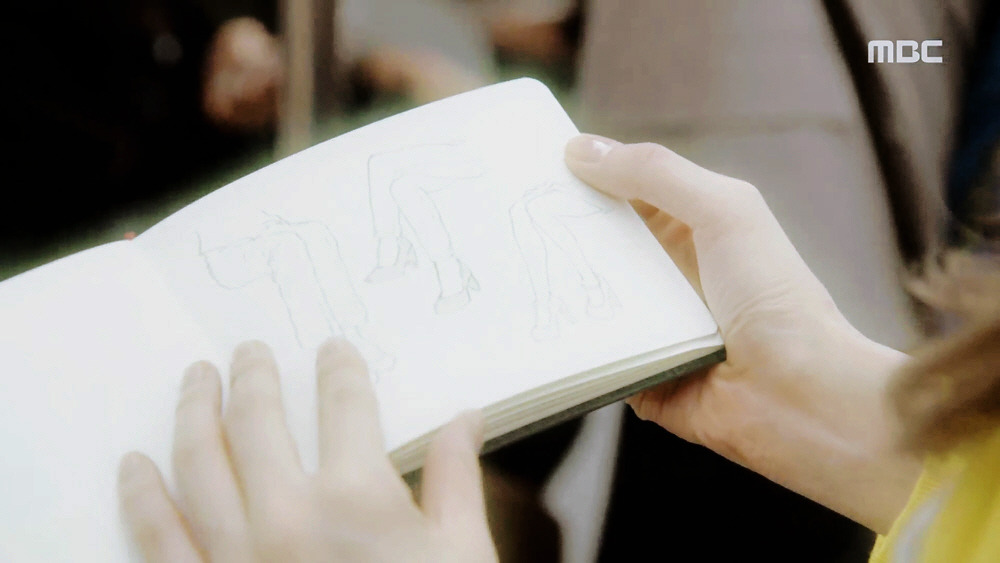 "내 다리! 너 내 다리 쳐다보면서 그리고 있었잖아!"