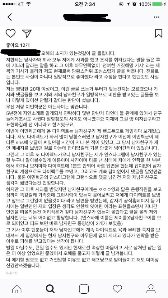 민혁 거짓 먹먹문>팬들 날뜀>커플이 팩트폭행함