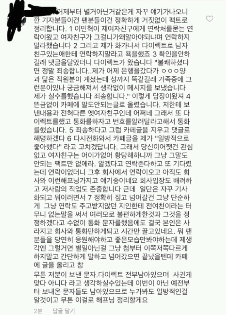 이민혁이 댓글을 지워버렸는지
