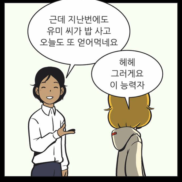 예..?능력자요? 여자한테 밥얻어먹는게 왜 능력잔가요?