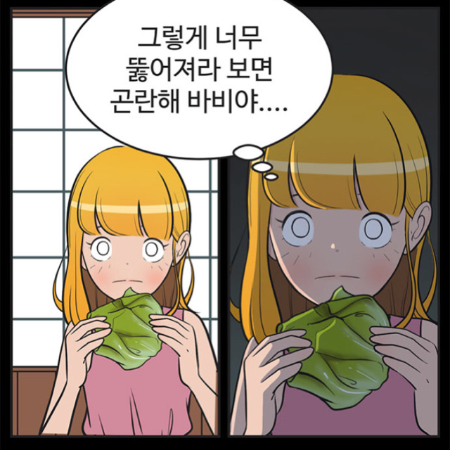 👉🏻 쌈 먹을 때 입 크게 벌린 모습 안보여주려고 쑈하는 유미