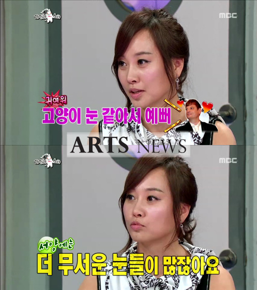 한국에선 자기 눈 무서워 하는 사람 많았는데 남편 눈에는 그저 귀여운 고양이 눈 일 뿐이라며 남편 자랑을 시 ㅋ 작 ㅋ
