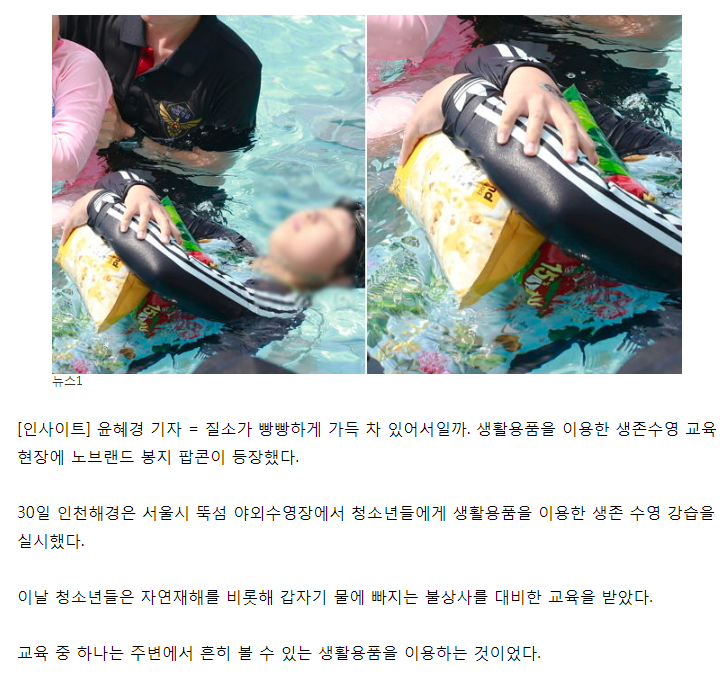 [스크랩] [흥미돋]가볍고 질소많아 어린이 "생존 수영"에 사용된 이마트 노브랜드 봉지팝콘