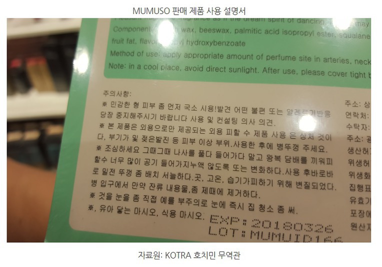 MUMUSO 제품에 적혀있는 엉터리 한국어