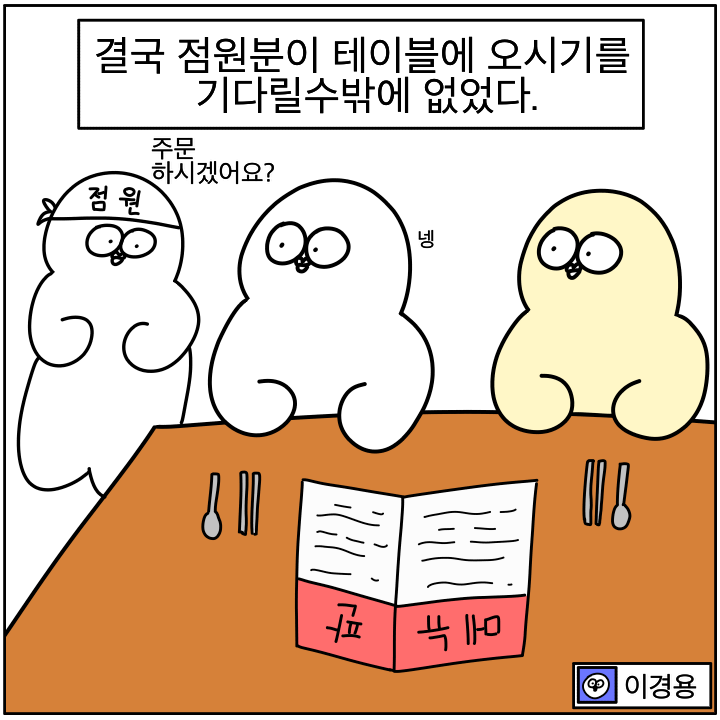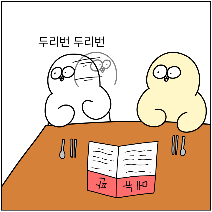 저분들 바쁘고 다른손님메뉴 기억하는 중일까봐 함부로 못부르겠음ㅋㅋㅋ걍 올때까지 기다림 -