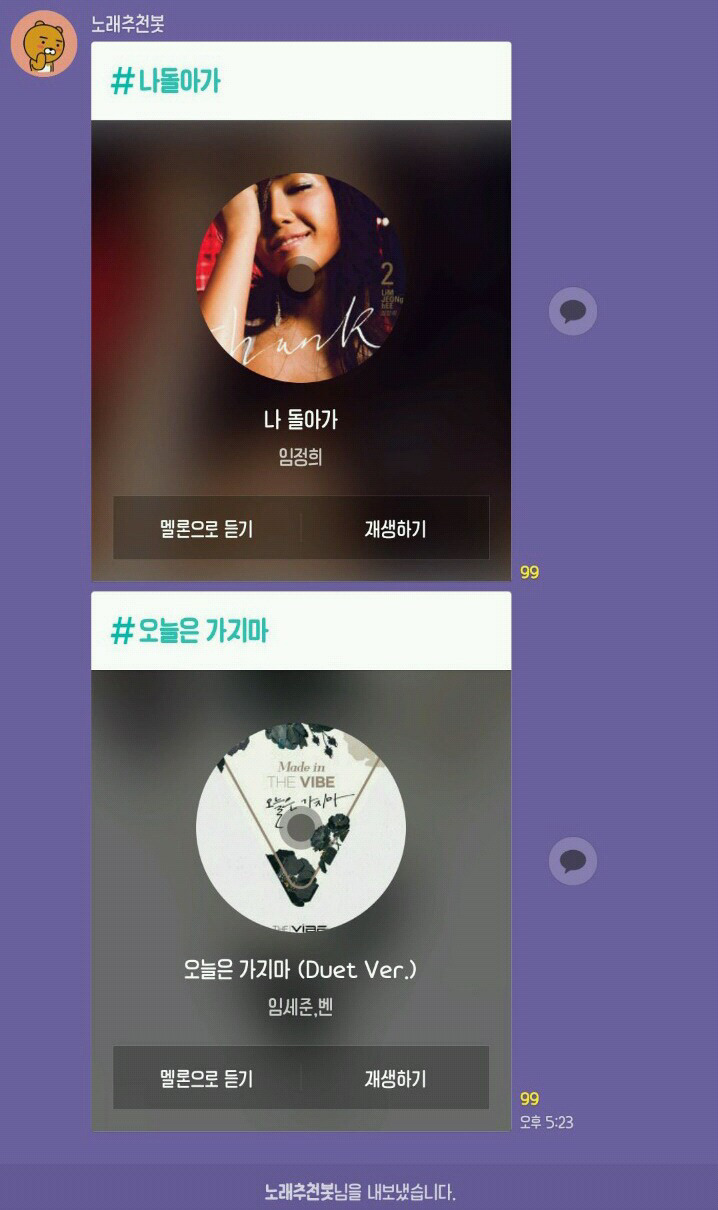 첨에 이렇게 노래추천봇이라는 닉넴으로 들어와서 뜬금 노래추천하다가 강퇴됨