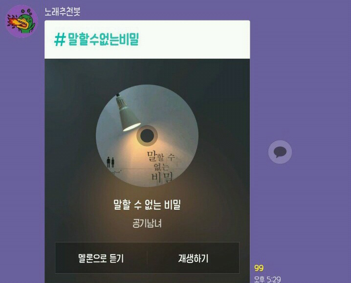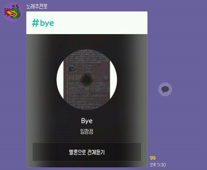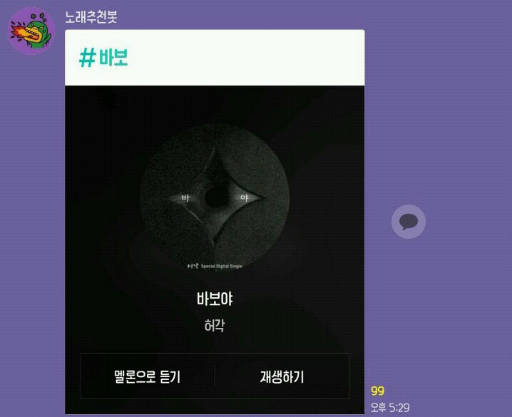 다시 들어와서 노래제목으로 메세지 남기고 나감