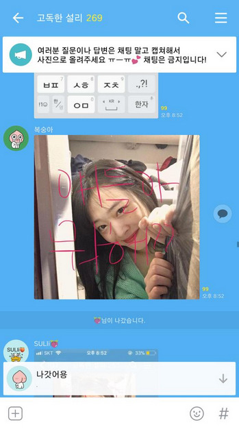 말하면 안된다고 고나리도 하고 나감(닉넴 복숭아=설리)