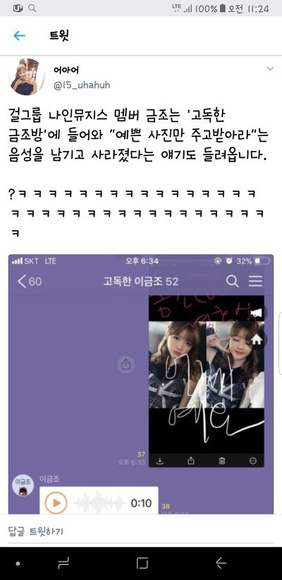 ++여환웅은 사칭이었음..! 사생이 카톡 캡챠해서 푼거래;;