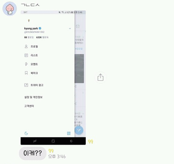 사칭이라고 뚜들겨맞다가 트위터 본인 계정 캡쳐해서 인증함
