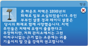 표지판의 설명을 보면 폰 하운트 영지에서 1898년 화재가 있었고 그 사건으로 이 저택에 살던 부부 샬롯경과 샬롯부인이 못숨을 잃었다는 것을 알 수 있다. (왜 1898년인지는 모를...)
