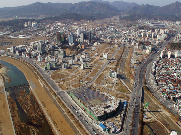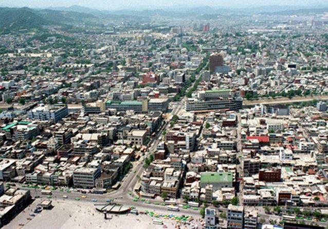 51년 대흥초등학교 인근. 뒤에 보이는 산은 식장산