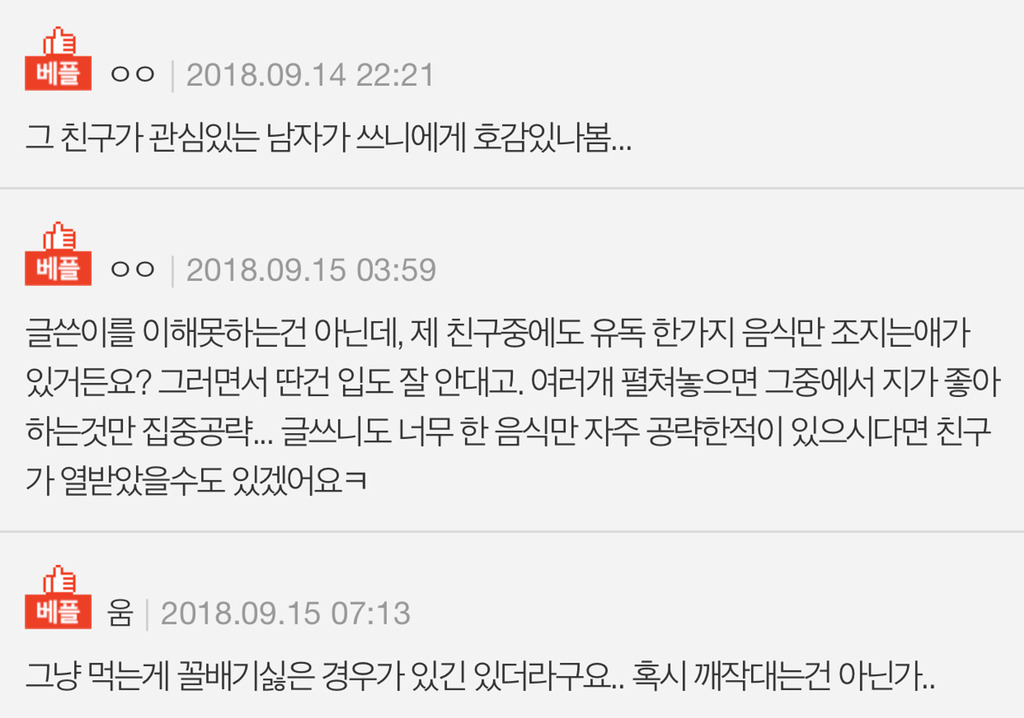 댓글이 생각보다 많고 깨작깨작과 편식이라고해서