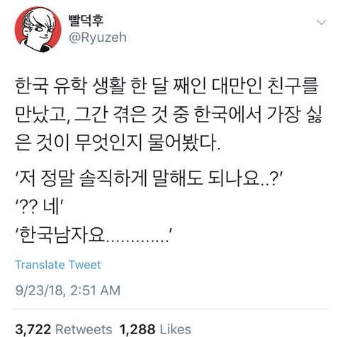 작성자한남에게만 공격적인 여시 작성시간 18.09.26 존나ㅋㅋ군인과 헤어질까고민한단 글..여자가 헤어지자하면 저런새끼들은 백퍼 여자 고무신거꾸로 신었다고 세상제일 걸레쌍년 칭호붙일새끼ㅋㅋㅋ피해의식 개쩔어서 나와서도 계속 염불왼다에 내이름건다