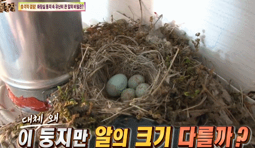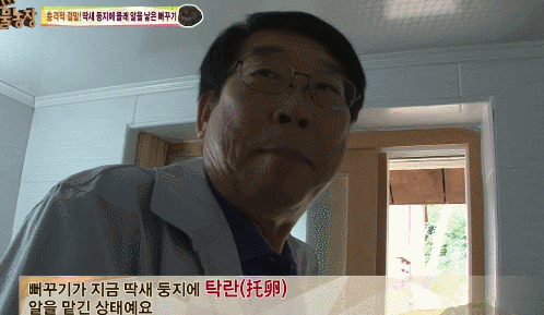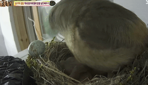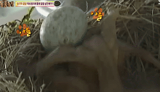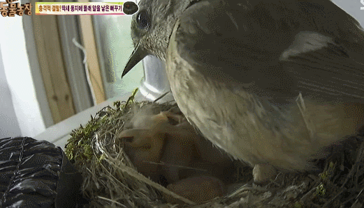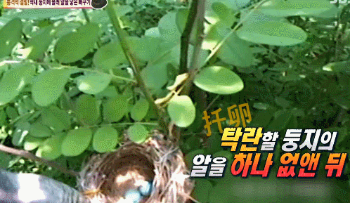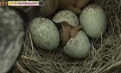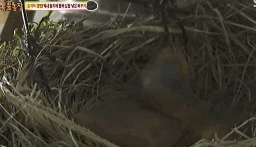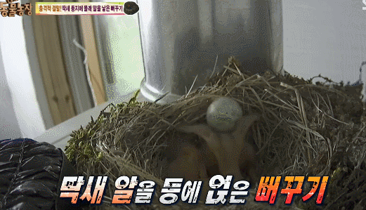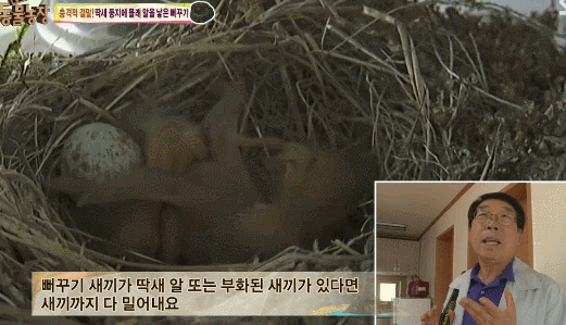 어미새가 있는데 또 새끼 뻐꾸기가 알을 밀어냄