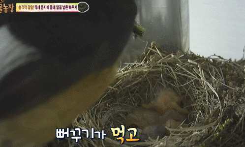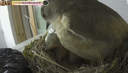 원래 뻐꾸기는 혼자 둥지 독차지 해서 더 많은 먹이를 먹기 위해 다른 새끼를 밀어내는 본능이 있다고 함