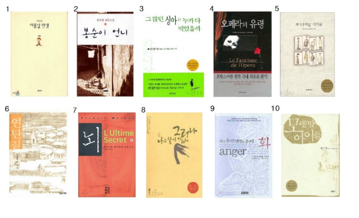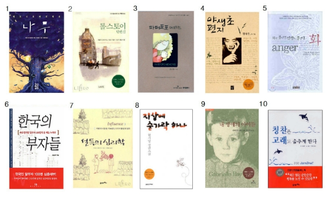 | 1 | 나무/ 베르나르 베르베르 | 11 | 모리와 함께한 화요일/ 미치 앨정봄 |