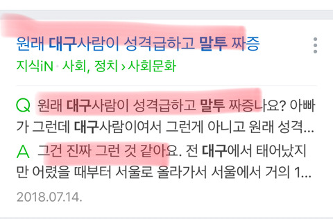 여튼 대구 말투가 너무 귀여워서 쪄본 글..