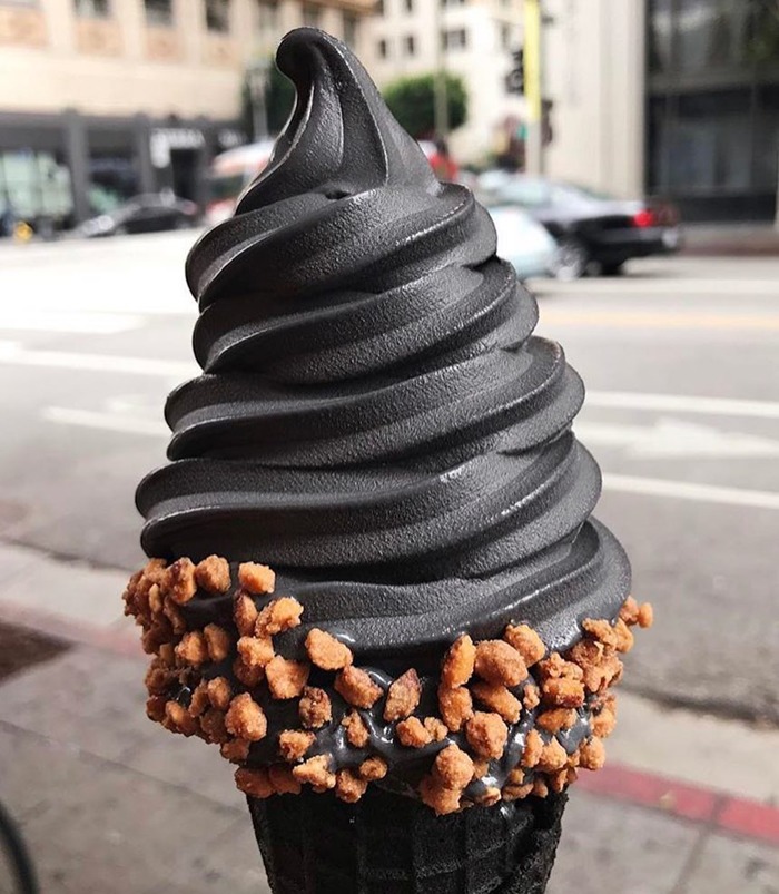 ‘챠콜 푸드(Charcoal Food)'는 짙은 검은색과 고스족스러운 분위기의 음식으로