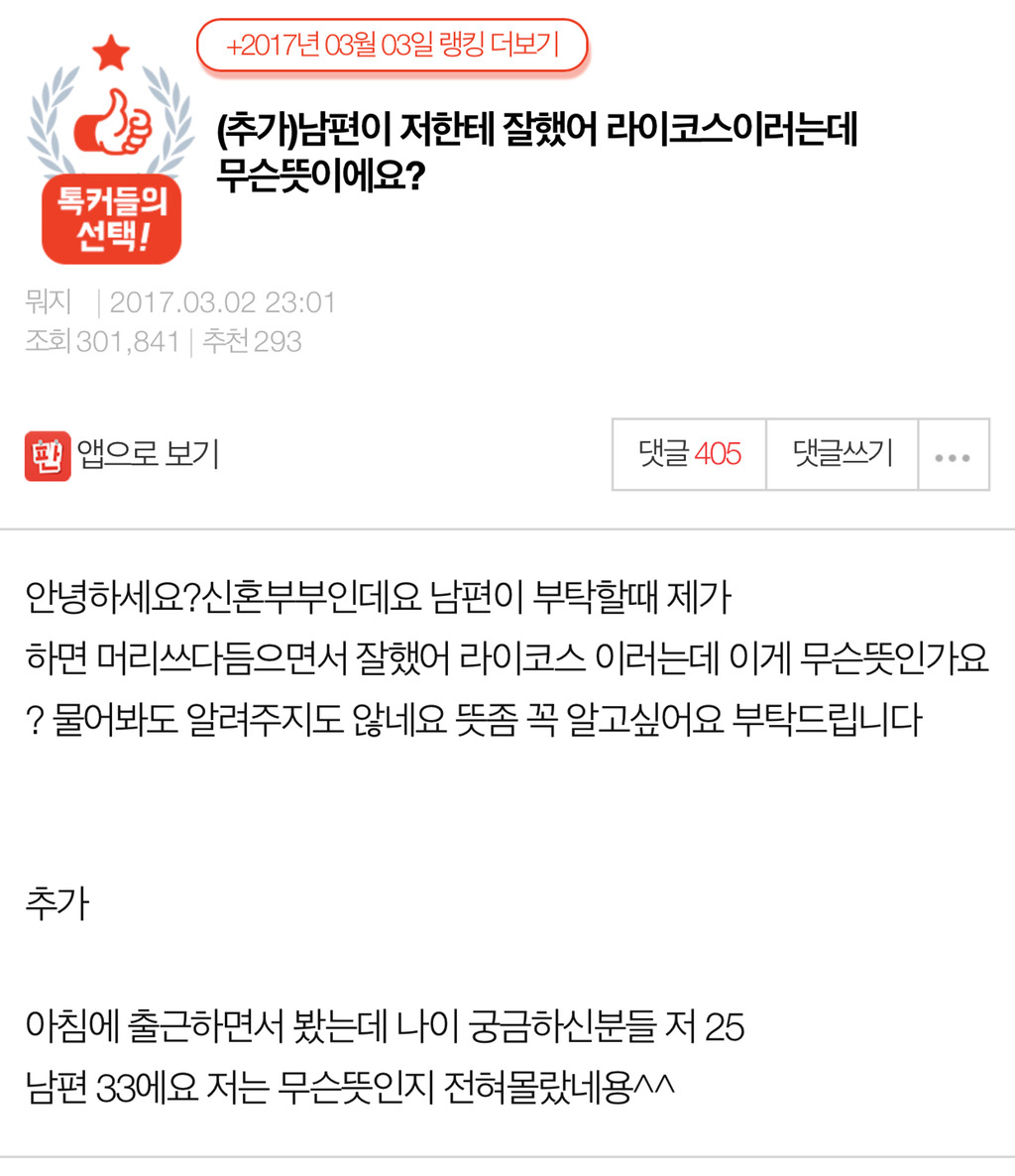 [스크랩] [흥미돋][네이트판] 남편이 저한테 잘했어 라이코스이러는데 무슨뜻이에요? 작성자고나리거부|작성시간18.11.09|조회수6,068 목록 댓글 49 글자크기 작게가 글자크기 크게가 출처 : http://m.pann.nate.com/talk/reply/view?pann_id=336239375&currMenu=search&page=1&q=라이코스ℴ=N&page=1&rankingType=total 다음검색 스크랩 원문 : *여성시대* 차분한 20대들의 알흠다운 공간 현재 게시글 추가 기능 열기 북마크 공유하기 신고 센터로 신고 댓글 댓글 49 댓글쓰기 답글쓰기 댓글 리스트 작성자Jennie Lee | 작성시간 18.11.09 잘해쓰~라이코쓰~ㅋㅋㅋㅋㅋㅋㅋㅋㅋㅋㅋㅋㅋㅋㅋㅋㅋㅋㅋㅋ 작성자05:04 | 작성시간 18.11.09 92인데 나 초딩 4학년인가 유행함 작성자아나조네스시대엔 내가 왕인데 | 작성시간 18.11.09 94 나도 저 말 하고 그랬음ㅋㅋㅋㅋㅋ 작성자핫도그월드이즈마인 | 작성시간 18.11.10 49인 울 아빠는 잘했어 치타! 이러는뎈ㅋㅋㅋㅋㅋㅋㅋㅋ 작성자포옥 | 작성시간 18.11.10 94 나도 저 말 했엇어 ㅋㅋㅋㅋ 댓글 전체보기