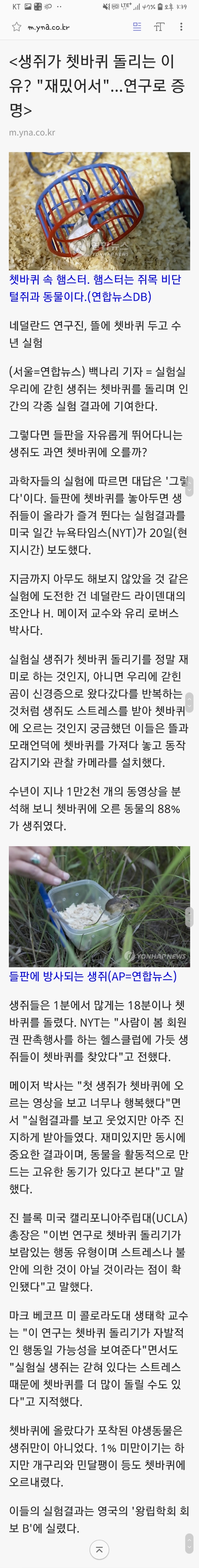 [여시뉴스데스크]생쥐가 쳇바퀴 돌리는 이유? "재밌어서"…연구로 증명 작성자웃겨증말|작성시간18.11.13|조회수2,801 목록 댓글 13 글자크기 작게가 글자크기 크게가 출처 :http://www.yonhapnews.co.kr/bulletin/2014/05/22/0200000000AKR20140522136300009.HTML?sns=copy귀여웡....... 다음검색 현재 게시글 추가 기능 열기 북마크 공유하기 신고 센터로 신고 댓글 댓글 13 댓글쓰기 답글쓰기 댓글 리스트 작성자알파go | 작성시간 18.11.13 증명자료제출좀해주세요 작성자파이크 | 작성시간 18.11.13 새앙쥐 인터뷰 증거로 첨부해주세요 ㅠㅠ 작성자천공의 성 | 작성시간 18.11.13 귀여워....... 작성자남은 삶의 첫날 | 작성시간 18.11.13 귀여웡 작성자마녀배달부 키키 | 작성시간 18.11.13 귀엽잖아 ㅠㅠㅠ 댓글 전체보기