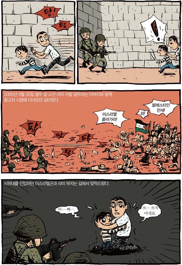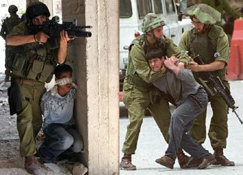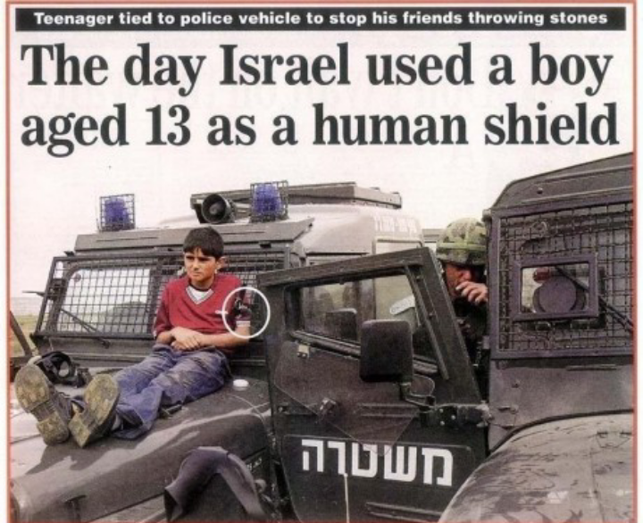팔레스타인 어린 아이를 납치해 인간방패로 쓰면서 공격을 하는 이스라엘