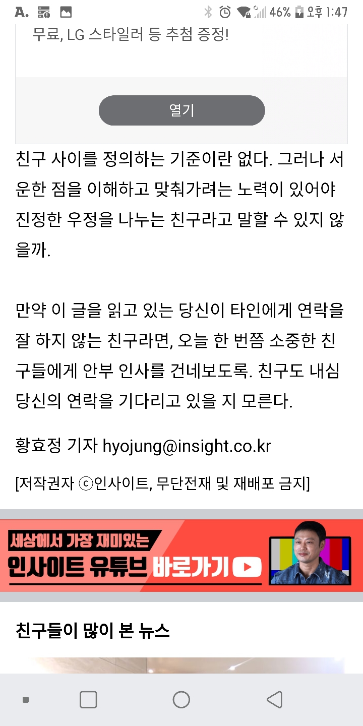 작성자완전조앙 작성시간 19.04.02 난 진짜 평생 친구라고 생각해도 3달 동안 카톡 안 해 봄 너무 바쁘기도 했고 진짜 안 하다가 갑자기 만나도 전혀 신경 안 쓰여 성향 맞음 ㅋㅋㅋ 남자한테도 맨날 연락으로 서운하게 하긴 함