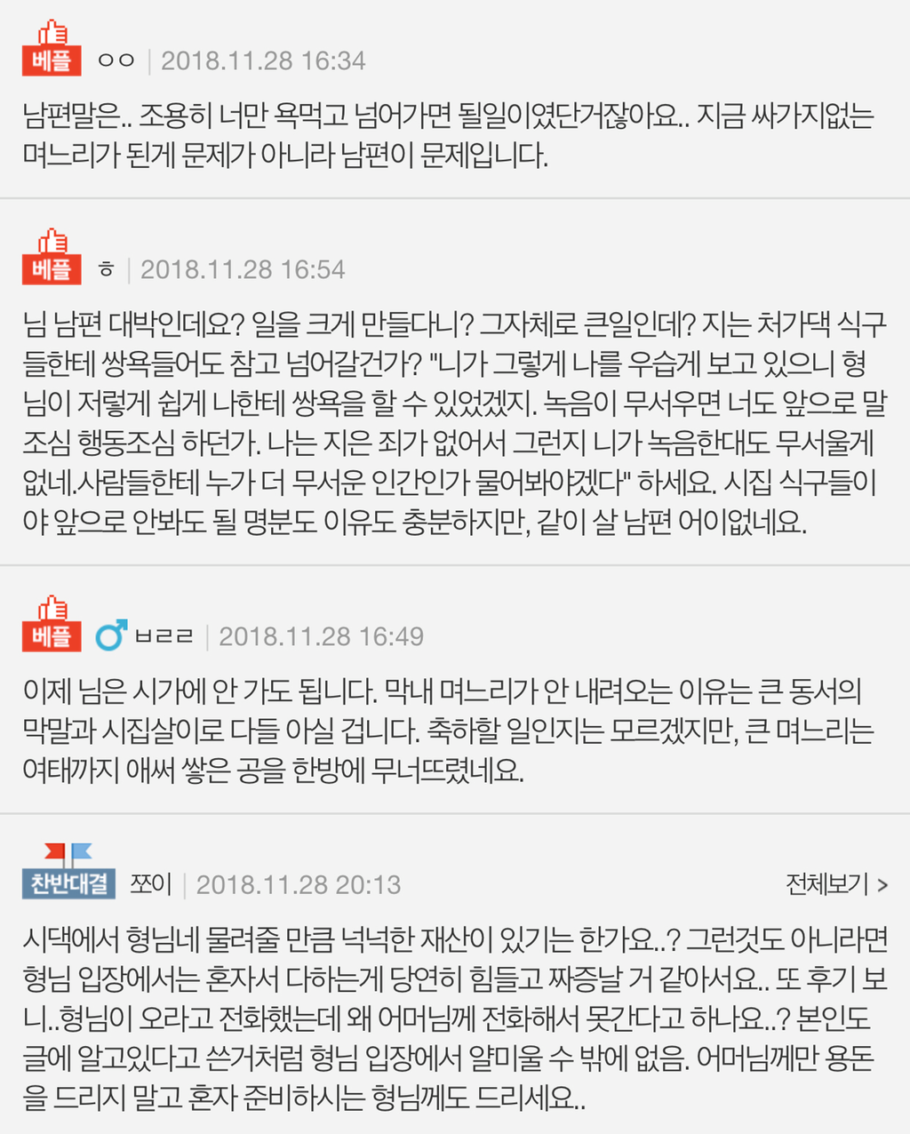 작성자비타민567 작성시간 18.12.01 남의 집 일에 애먼 며느리들만... 안타깝다 안타까워